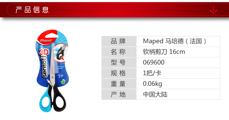 馬培德剪刀 軟柄剪刀 16cm 顏色隨機(jī) 單位:把