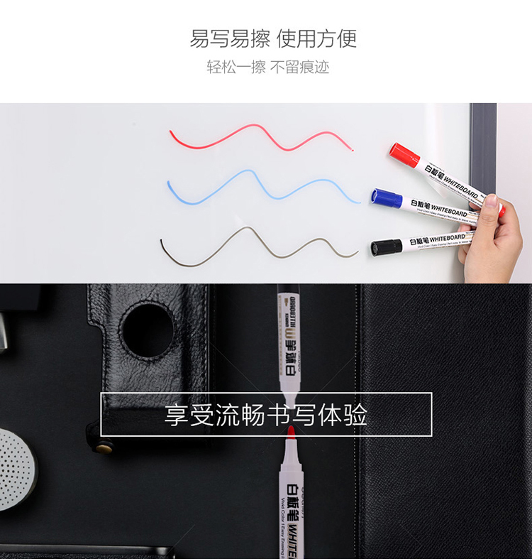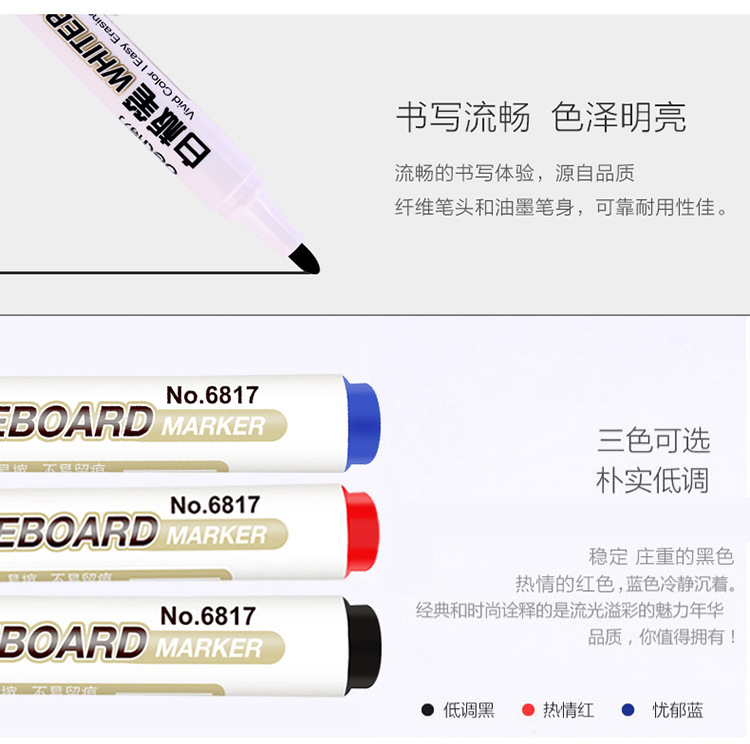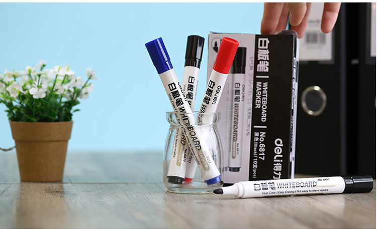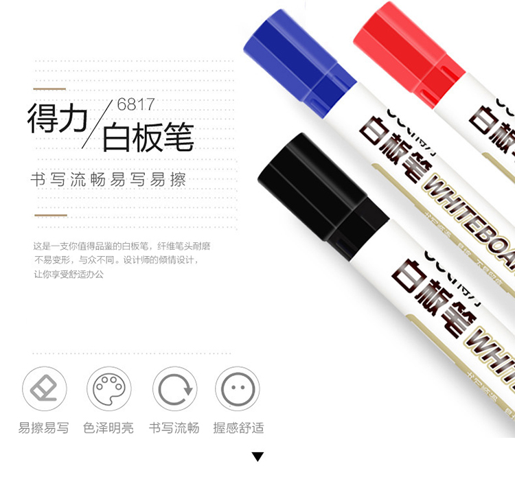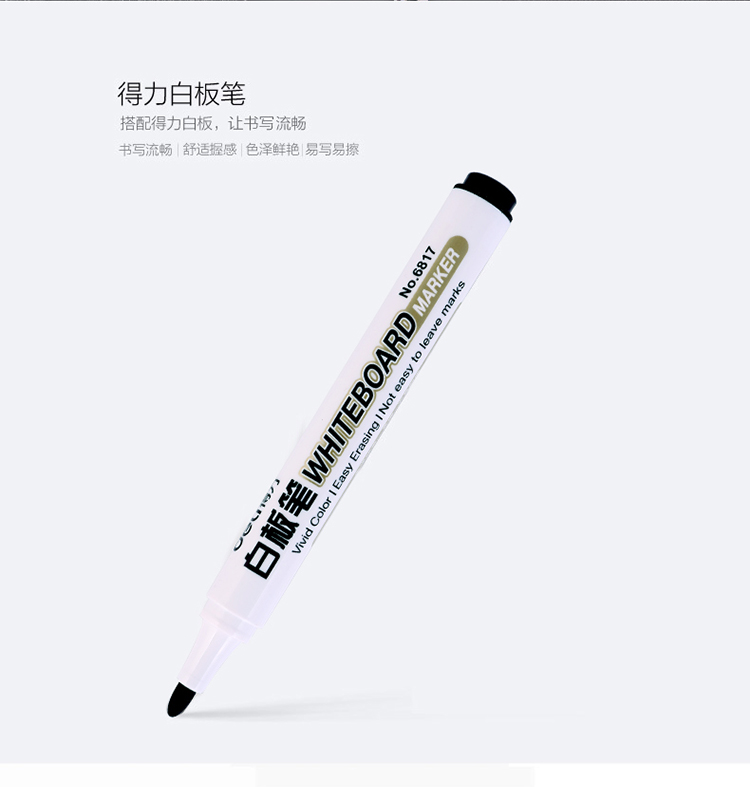得力白板筆 6817 易擦不留痕白板筆 黑色 10支/盒