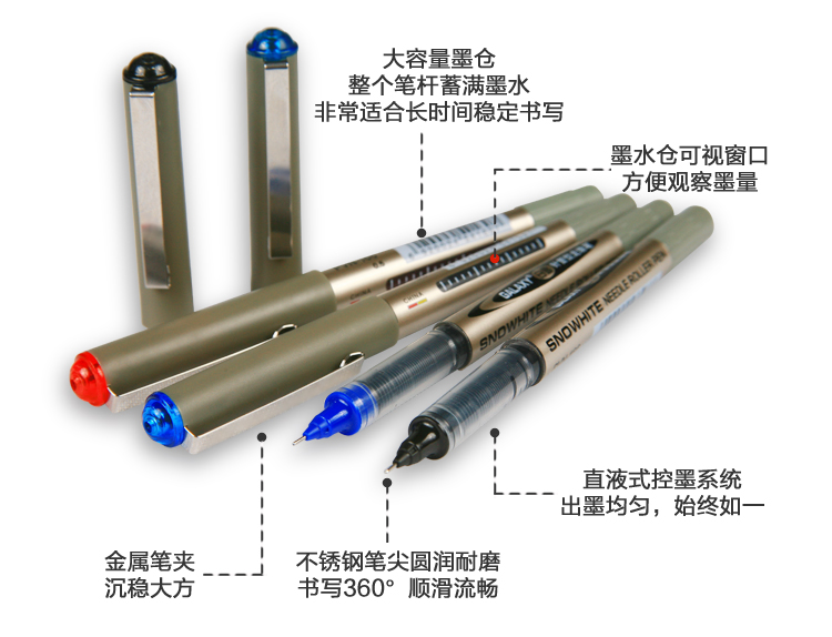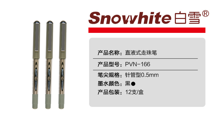 白雪 PVN-166 0.5mm直液式走珠筆 簽字筆 藍(lán)色 12支/盒