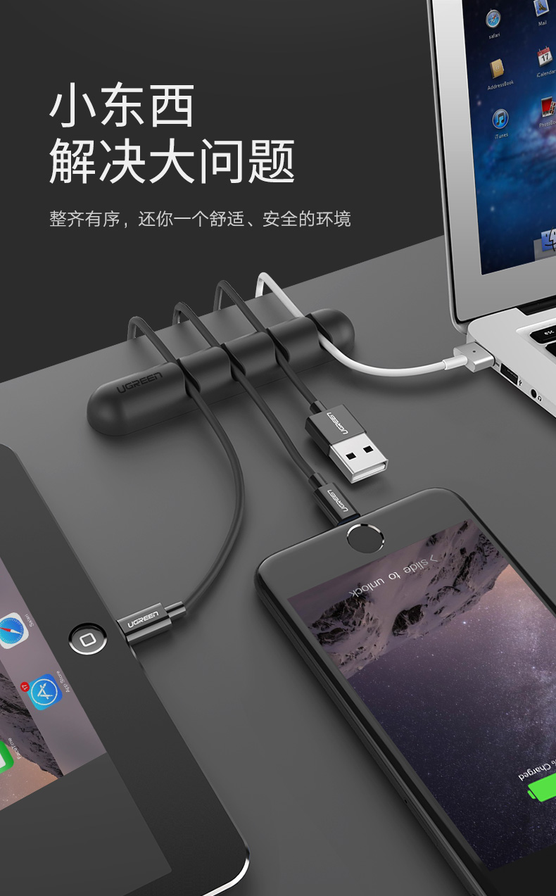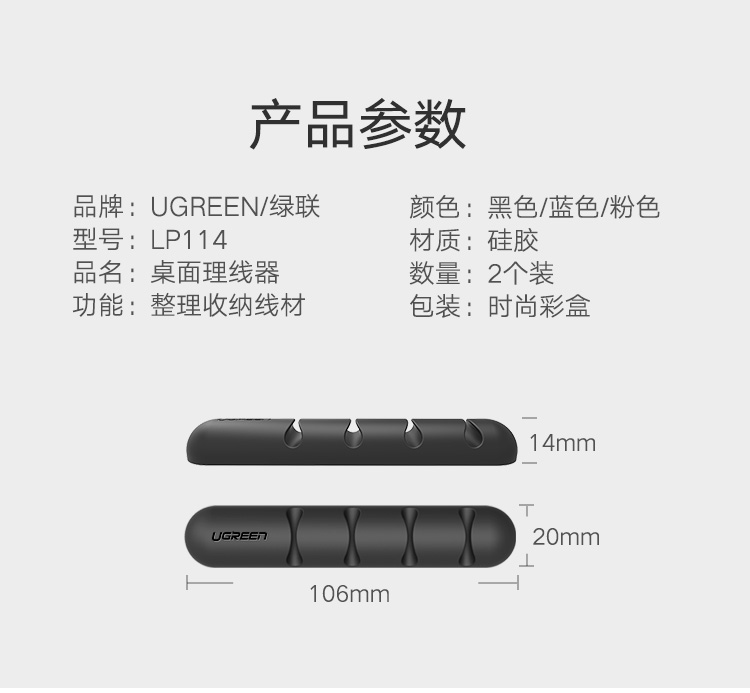綠聯(lián)桌面理線器 LP114 電腦桌面理線器纏線器 黑色 2個裝 單位:盒