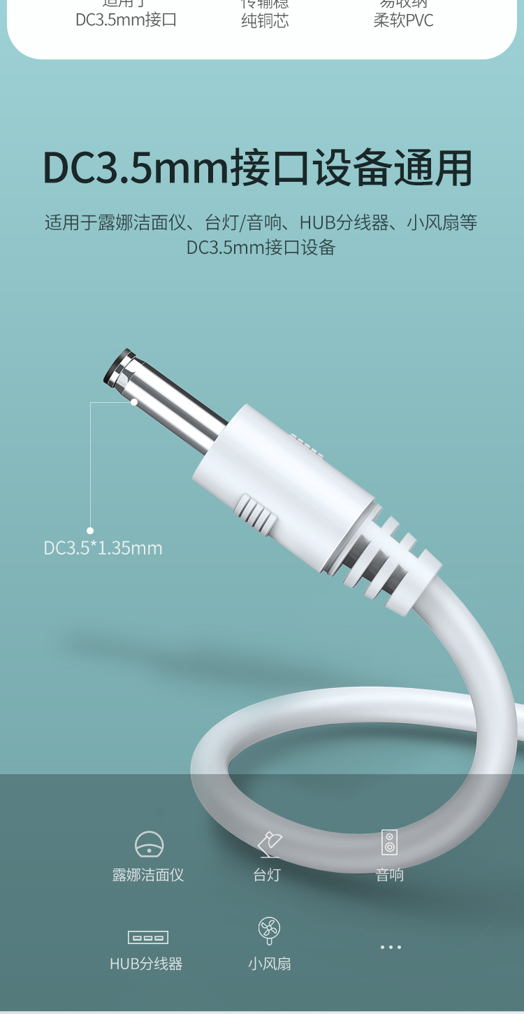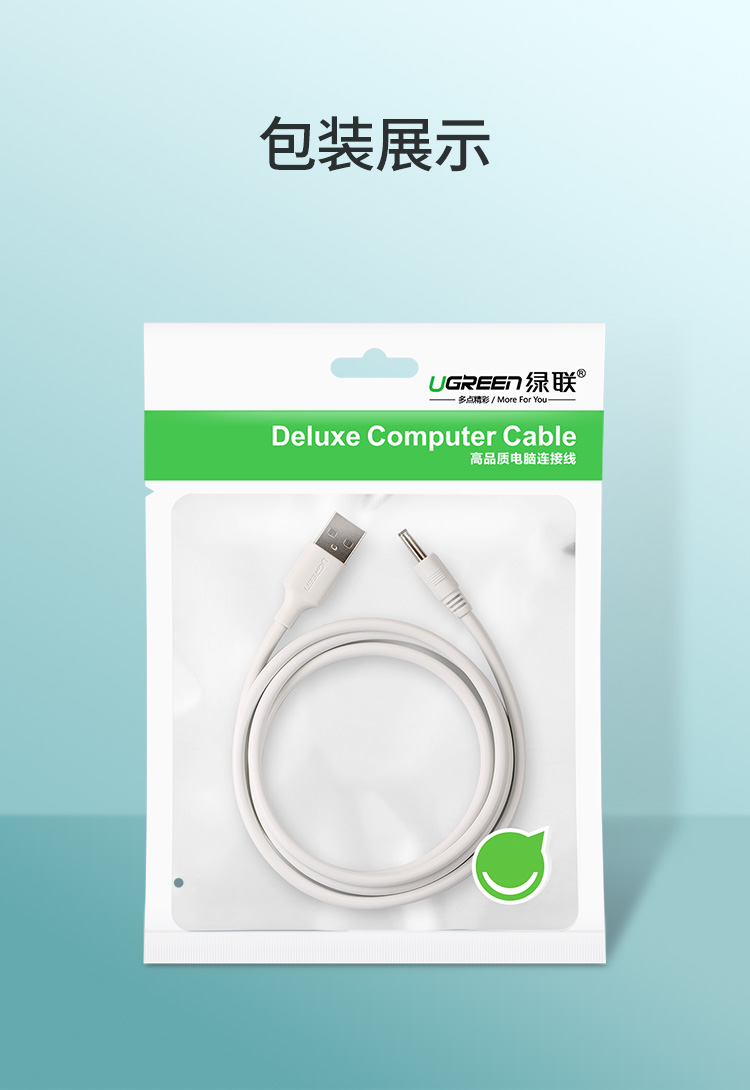 綠聯(lián) US277 USB轉(zhuǎn)DC電源線 3.5mm供電線 支持分線器集線器HUB 1米 白色 單位:根