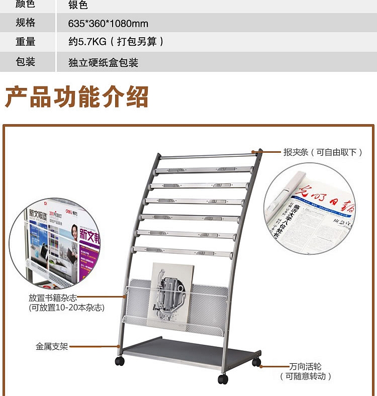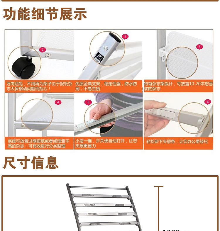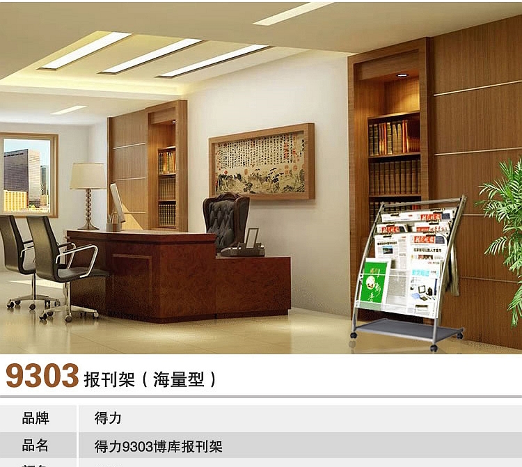 得力報刊架 9303 博庫報刊架(海量型)(鋁合金夾條)635*360*1080mm 單位:個