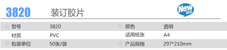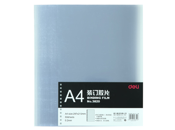 得力膠片 3820 透明裝訂封面/裝訂膠片A4 單位:50張/包