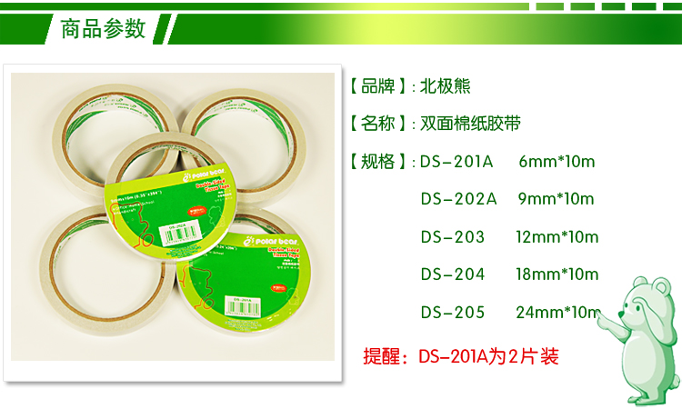 北極熊雙面棉紙膠帶 DS-203(12mm*10M) 單位:卷