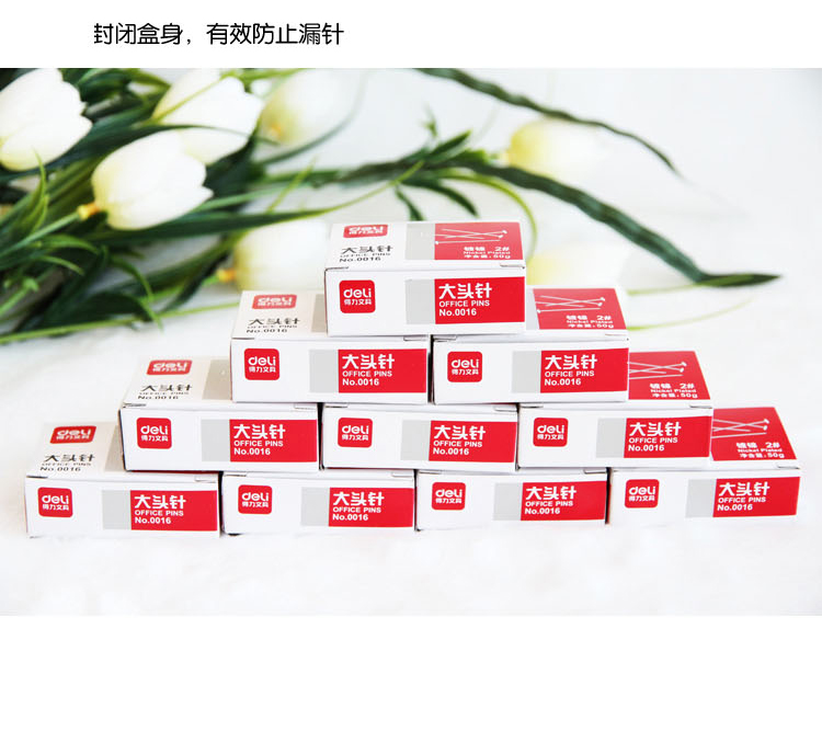 得力大頭針 0016 2#24mm大頭針財務(wù)文具辦公用品(50克/盒) 單位:10盒/包