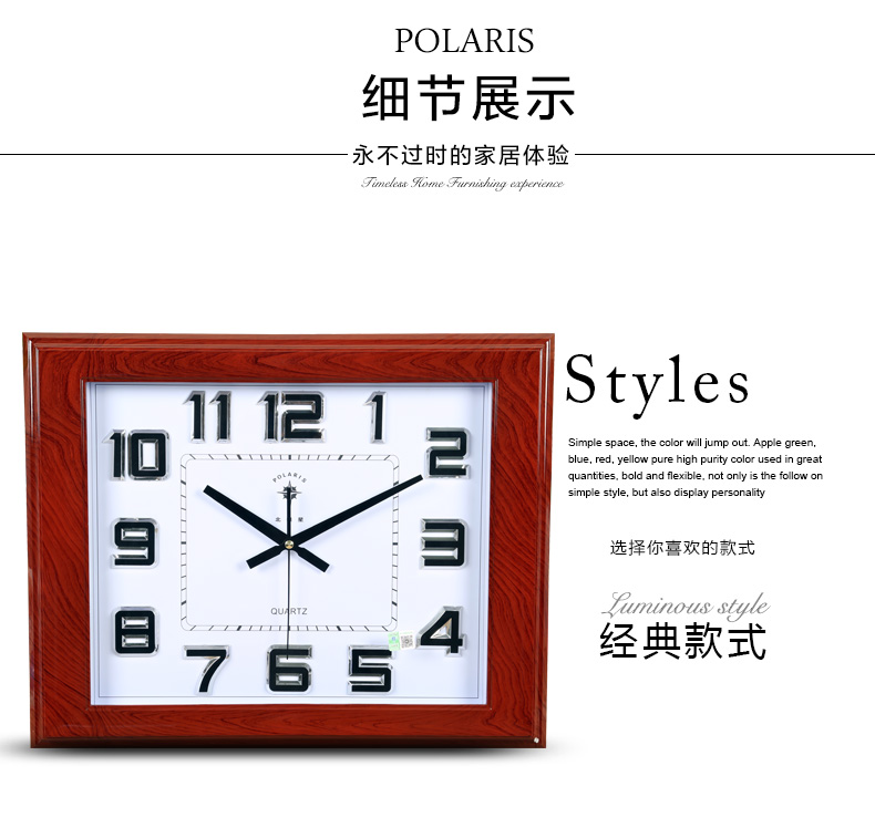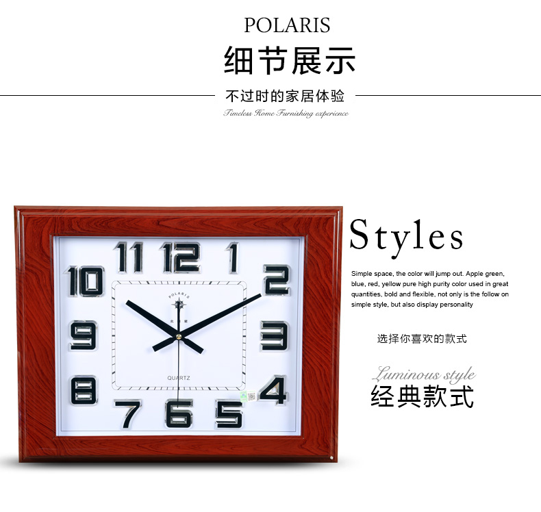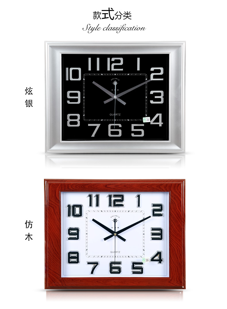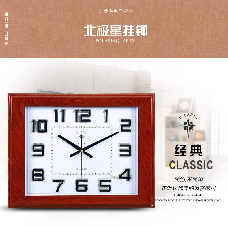 北極星 方形客廳靜音掛鐘現(xiàn)代時(shí)尚石英鐘 2683 木紋色(50*40) 單位:個(gè)