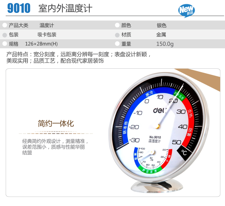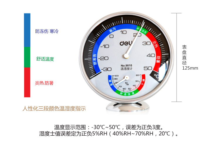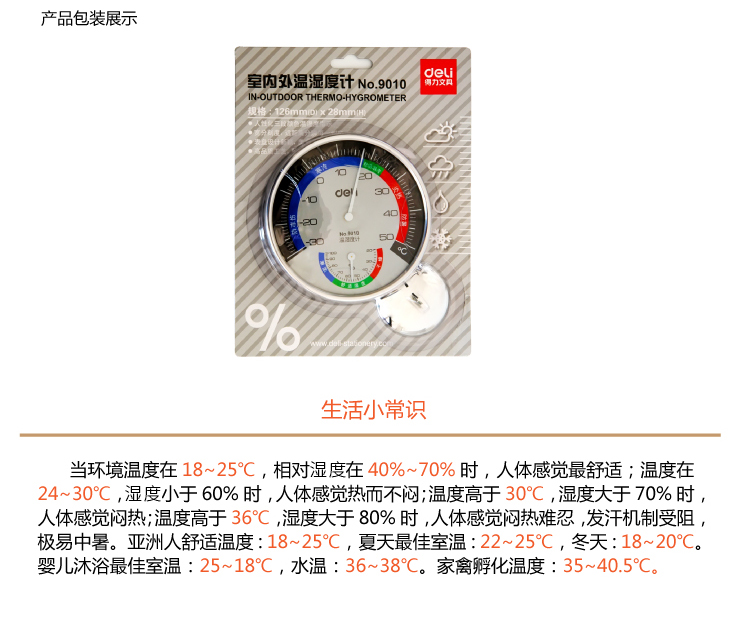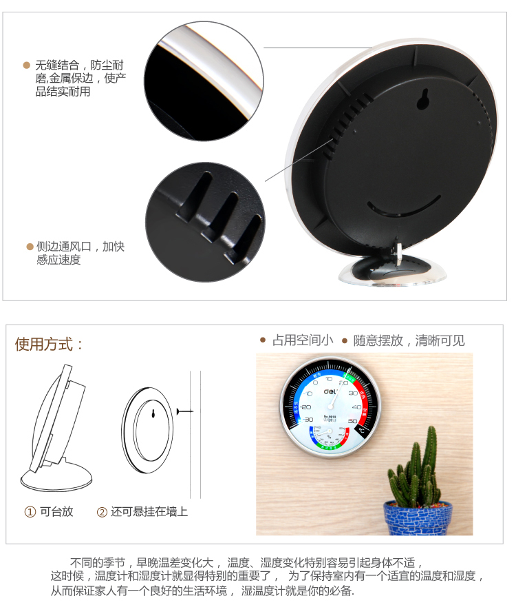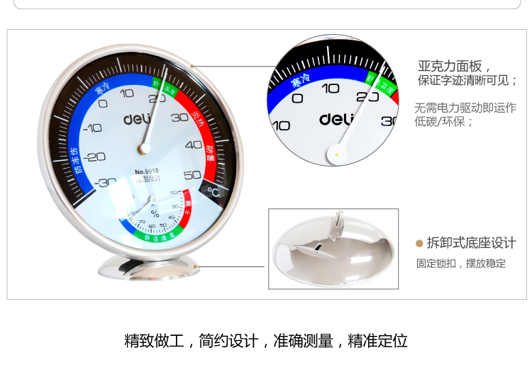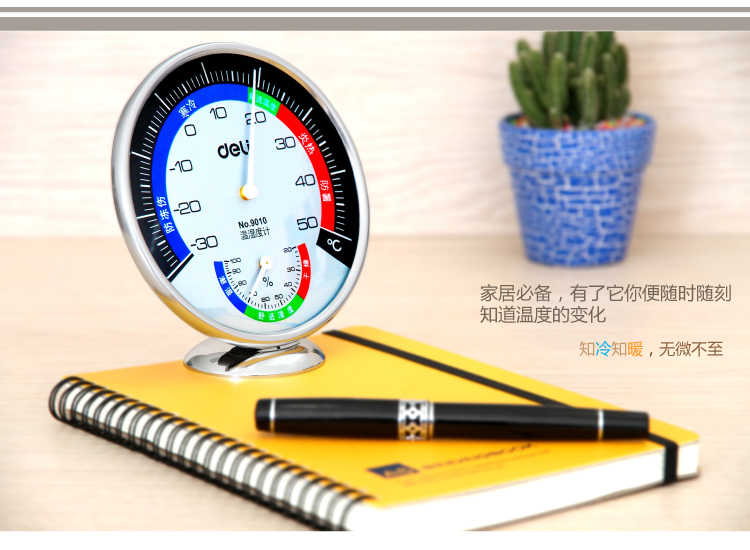得力溫濕度計 9010 臺式免電池大表盤室內(nèi)溫濕度計 單位:個
