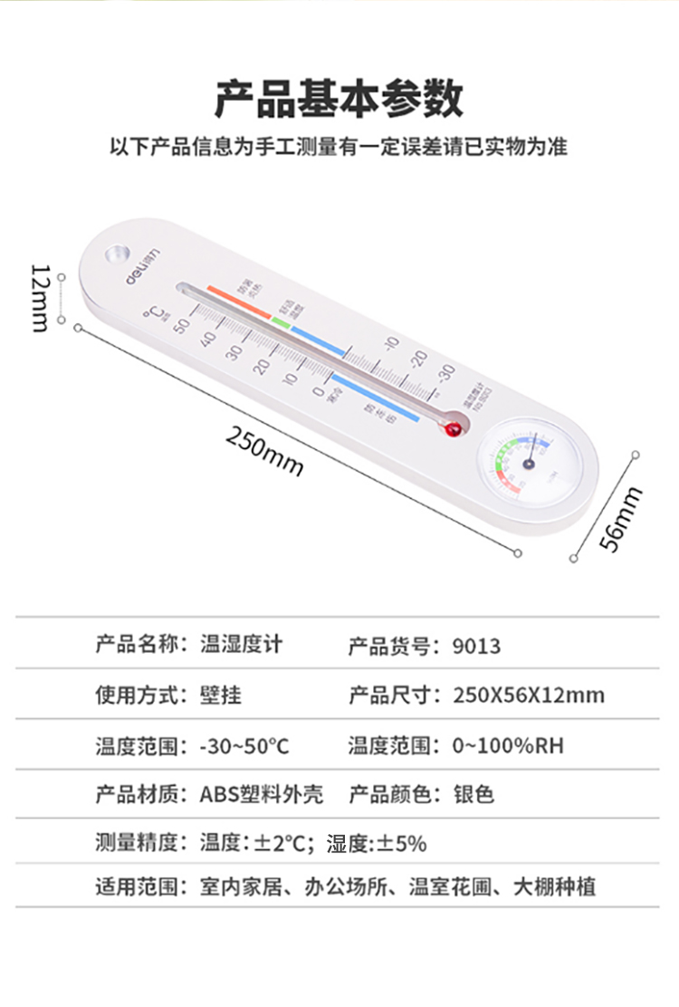 得力溫濕度計 9013 經典掛壁式 單位:個