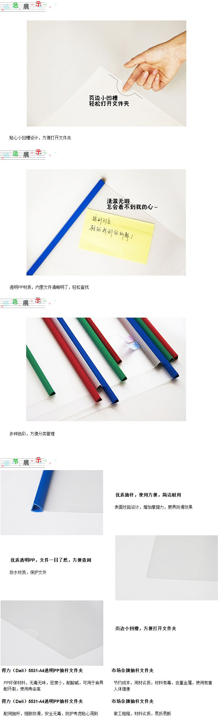 得力(deli)5531透明抽桿夾拉桿夾(5個(gè)裝顏色隨機(jī))
