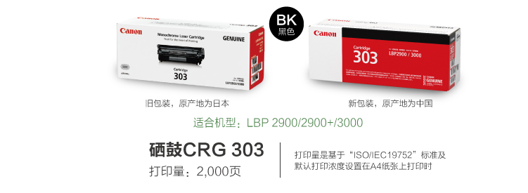 佳能硒鼓 CRG 303 黑色硒鼓(適用:LBP-2900+ 3000) 單位:支