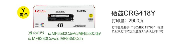 佳能(Canon)CRG-418Y 黃色硒鼓(適用iC MF8350cdn 725cdn 728cdw)