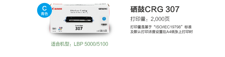 佳能硒鼓 CRG-307C 青色硒鼓(適用:LBP5000 LBP5100) 單位:支