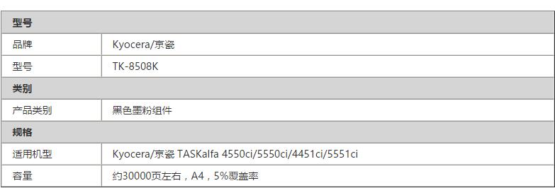 京瓷墨粉 TK-8508K 黑色 適用:京瓷TASKalfa 4550ci 5550ci 4551ci 5551ci 單位:支