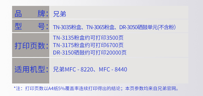 兄弟墨粉 TN-3065 黑色粉盒 適用: MFC-8220 MFC-8440打印機(jī) 單位:支