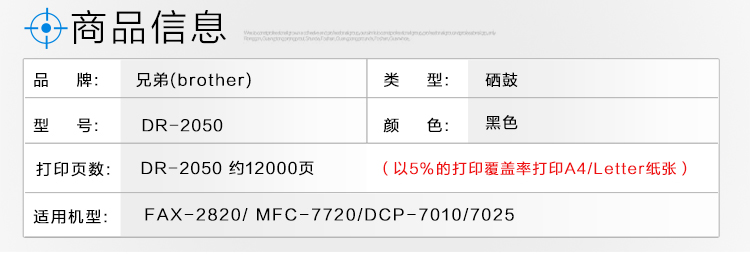 兄弟硒鼓 DR-2050 黑色硒鼓 適用:DCP7010 2820 7420 單位:支