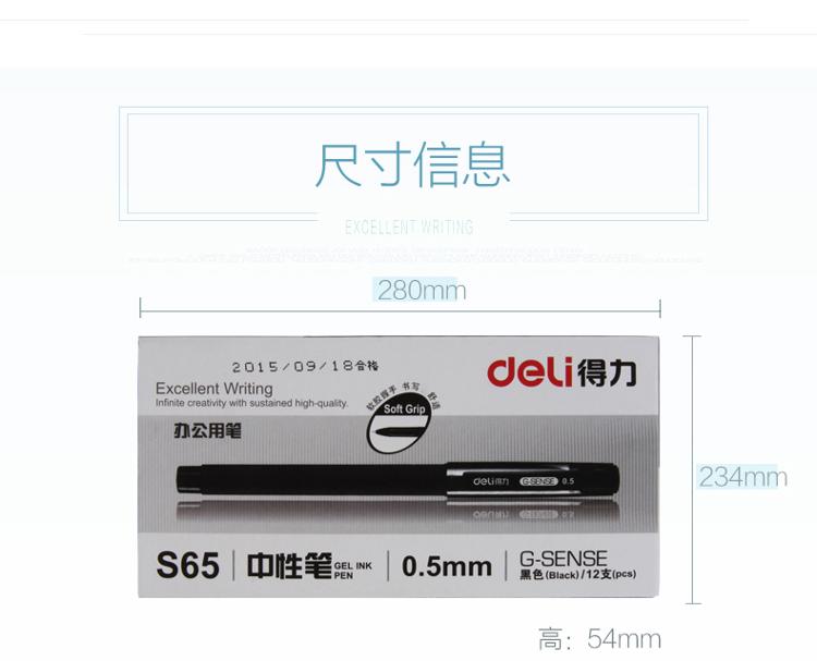 得力 S65 磨砂桿中性筆子彈頭 0.5mm黑色 12支/盒