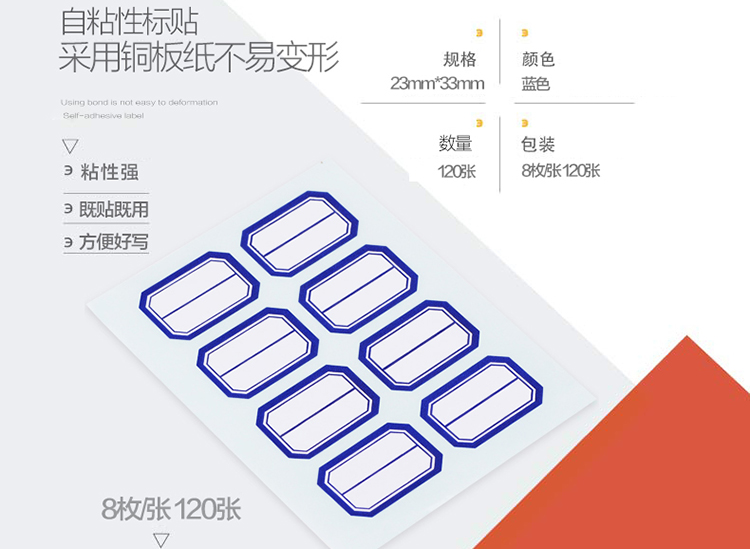 得力不干膠標(biāo)簽貼紙 7190 96枚23mm*33mm自粘性標(biāo)貼紙 8枚/張 單位:包