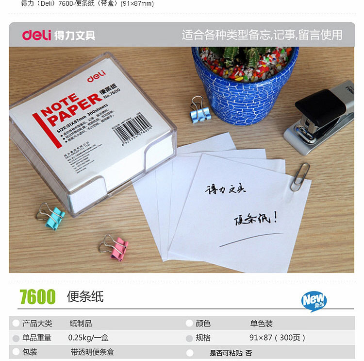 得力 7600 91×87mm便簽紙/便條紙(帶盒) 單位:包