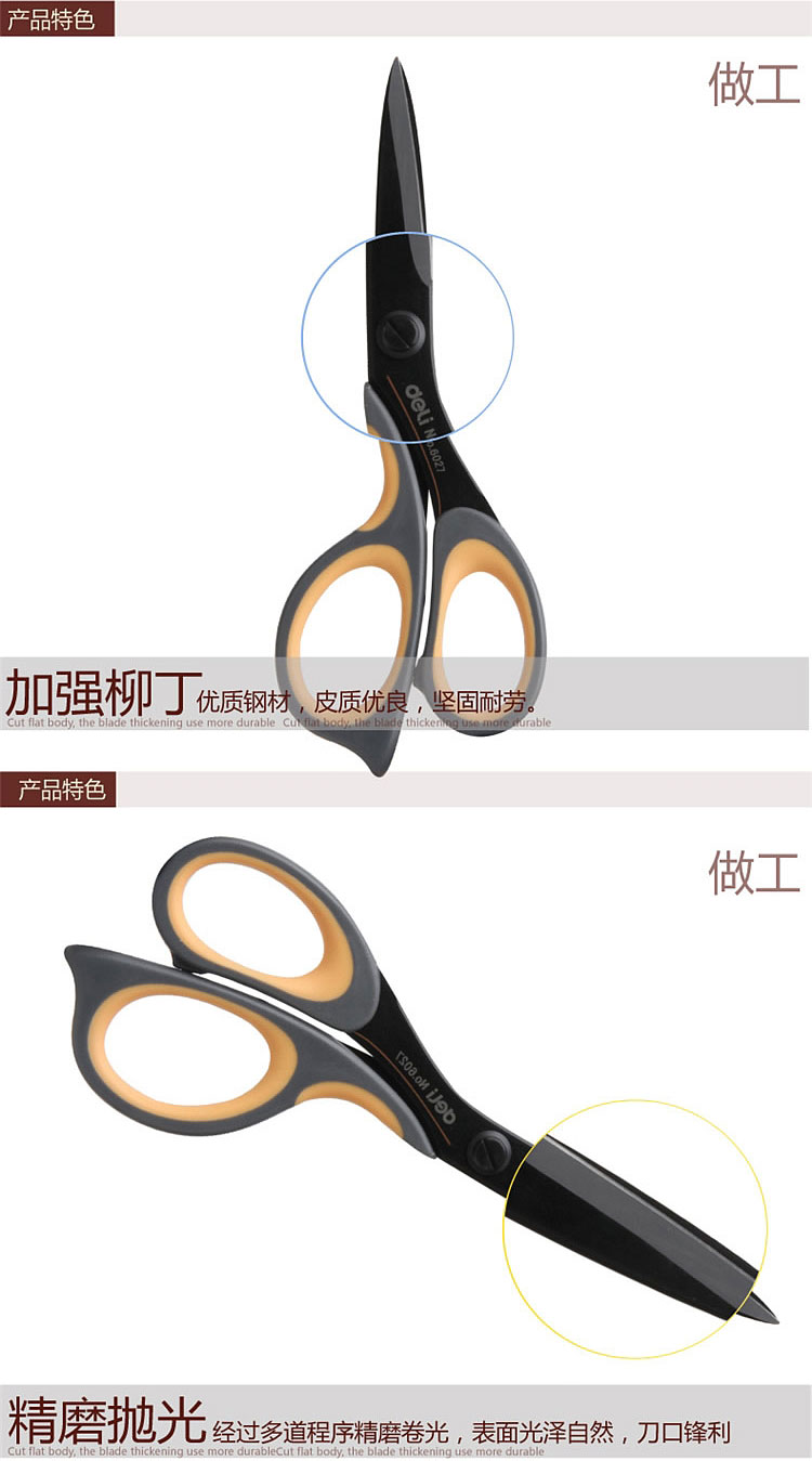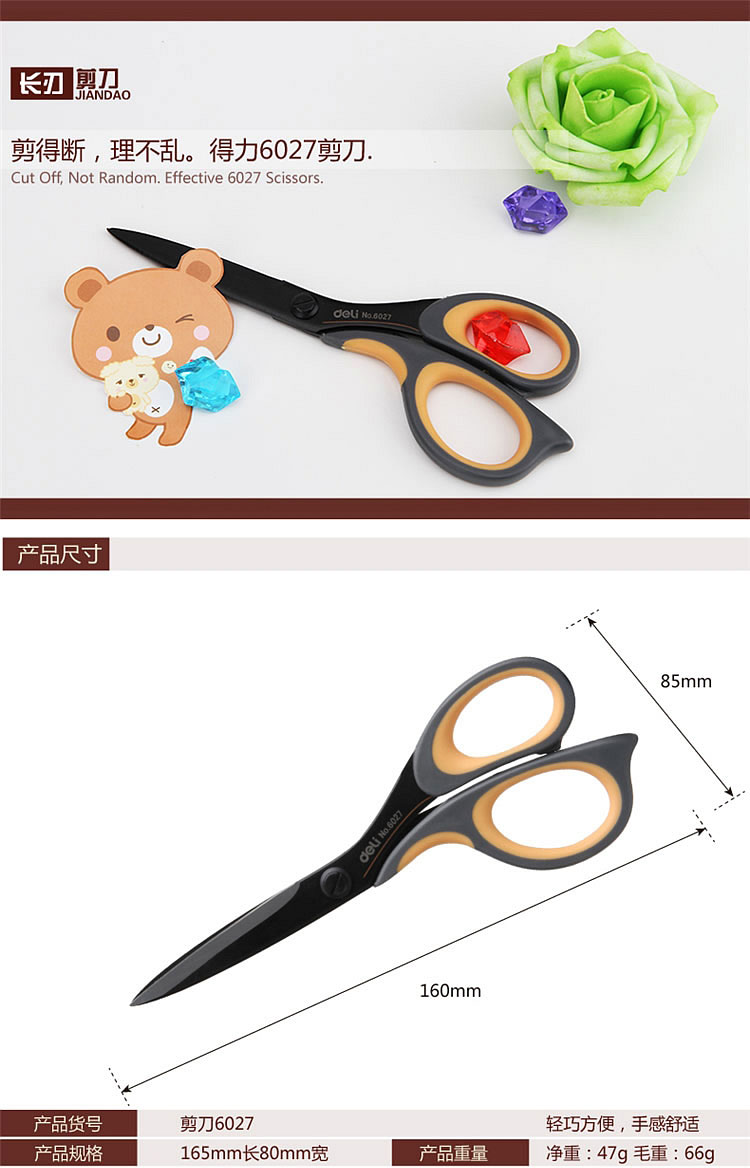 得力剪刀 6027 合金不銹鋼剪刀/辦公剪刀/美工剪刀 單位:把