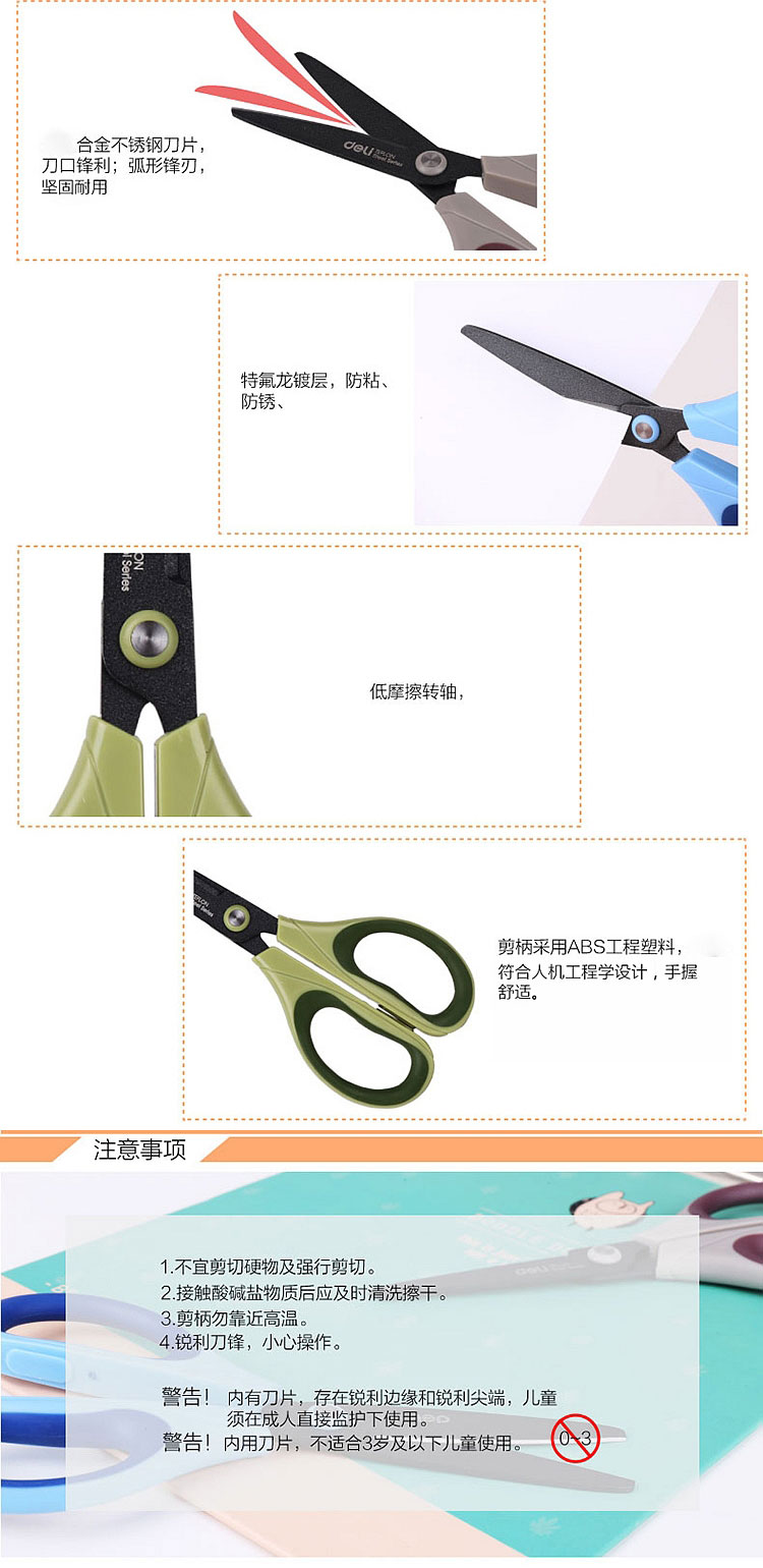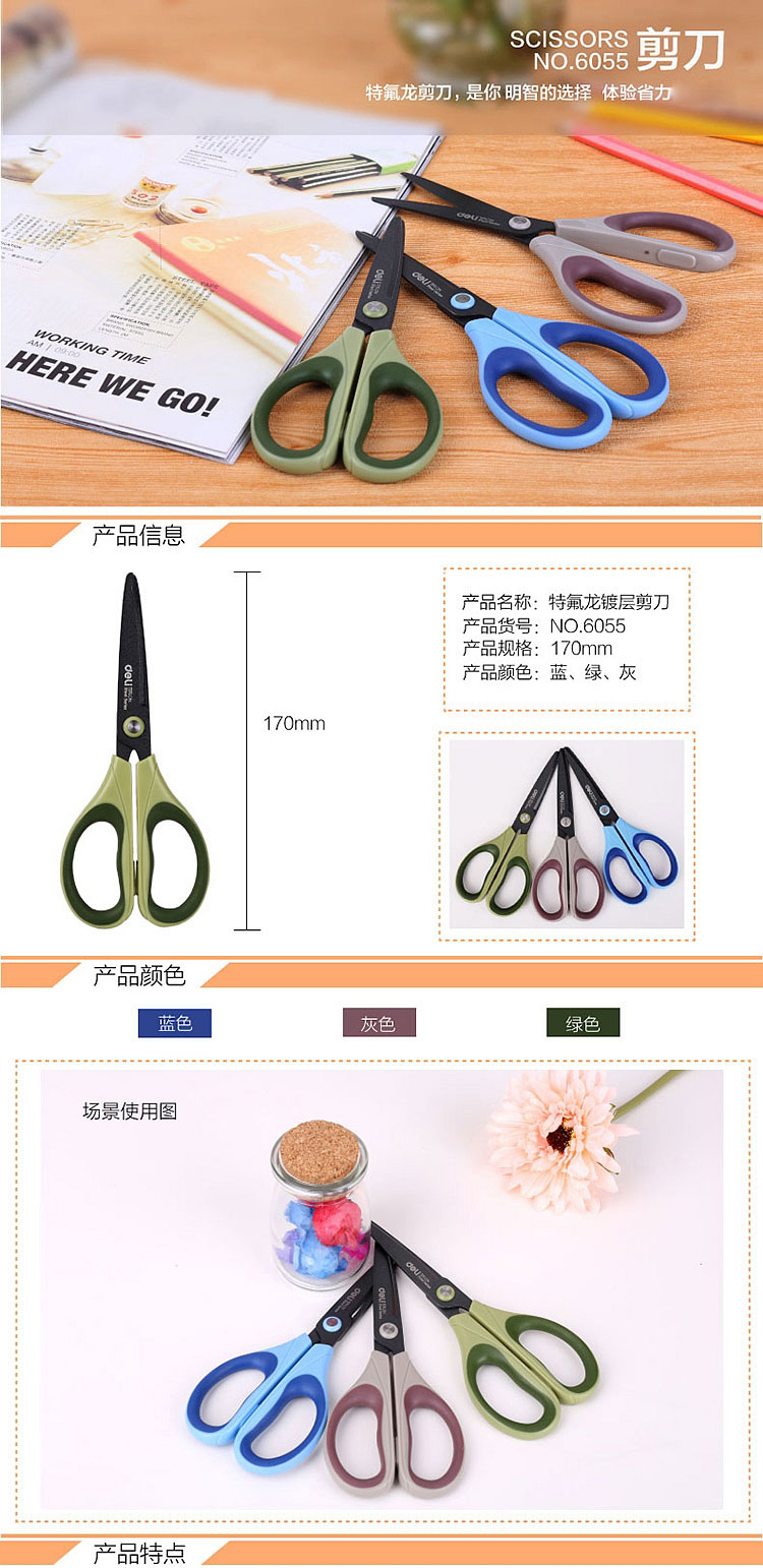 得力剪刀 6055 特氟龍材質(zhì)防粘不銹鋼剪刀/顏色隨機 單位:把