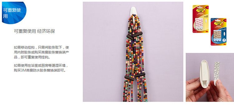 3M無痕粘鉤掛鉤 中號 輕松取不留痕 單位:卡