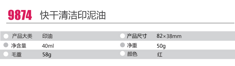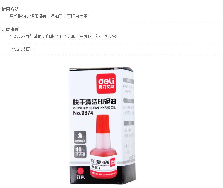 得力 9874 40ml快干清潔印泥油(紅色) 單位:個(gè)