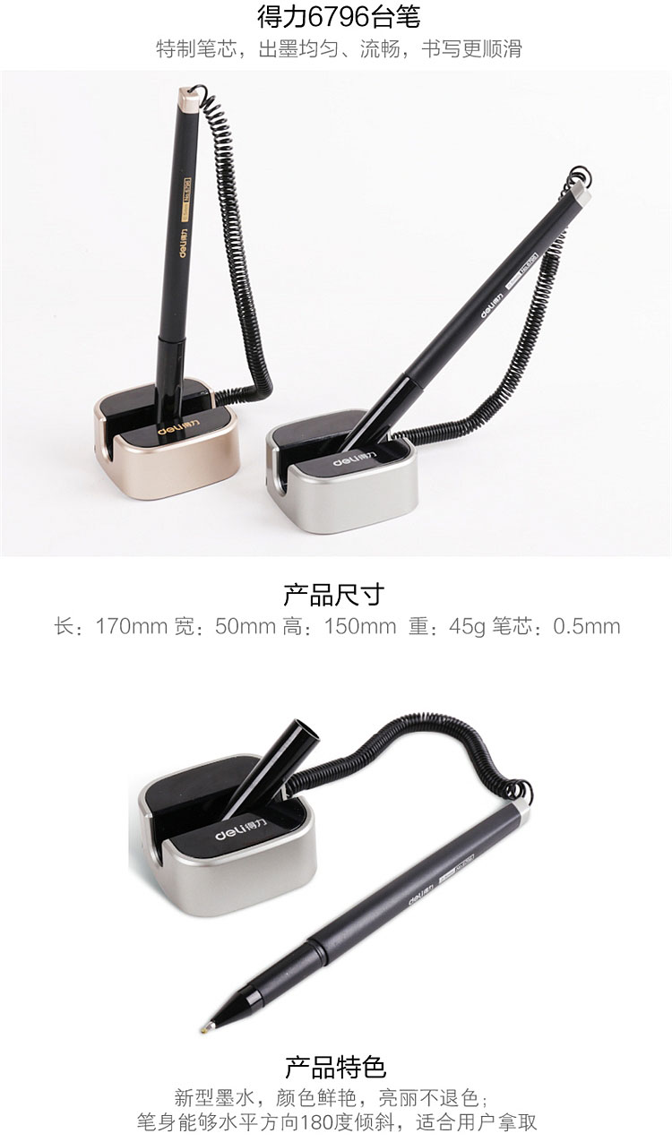 得力 6796 柜臺桌面粘貼固定中性筆簽字筆 黑色 單支裝